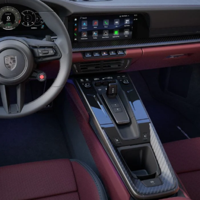 Step inside the 911, and you are welcomed by a fusion of luxury and sportiness. The latest generation has a sleek and sophisticated interior, characterized by straight lines and compact, minimalist elements. The central rev counter, a characteristic feature of all Porsche models, takes center stage, flanked by two high-resolution displays. High-quality materials, customizable options, and state-of-the-art infotainment ensure an exhilarating drive on the UAE’s roads.